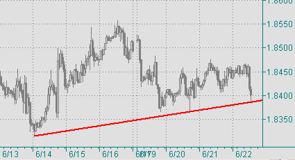 SUP 1: $1.8395 - линия поддержки с 13 июня на часовом графике