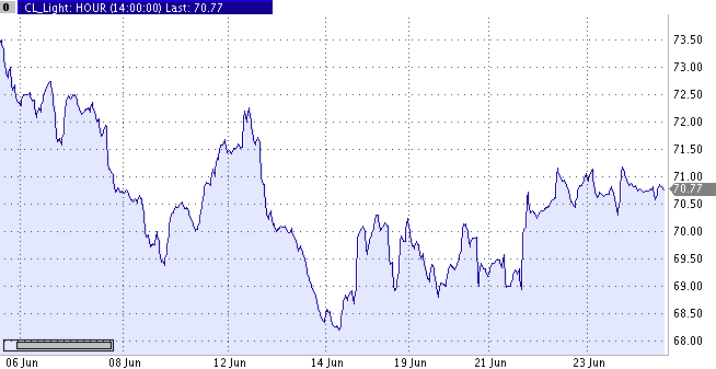 Цены на нефть с поставкой в августе сорта Brent находятся около $70 за баррель в понедельник, не сумев преодолеть эту отметку к закрытию предыдущей сессии на фоне сигналов об увеличении поставок из Ирака. "Падение цен на августовские фьючерсы Brent ниже $70 может быть знаменательным", - сказал Кристофер Беллью из Bache Financial в интервью Reuters. "В какой-то момент (ситуация) показалась позитивной, когда (цены) превысили $70, и то, что они упали, немного разочаровывает." Министр нефтяной промышленности Ирака Хуссейн аль-Шахристани в воскресенье предоставил оптимистичный прогноз развития нефтяной отрасли, сказав, что ежедневный объем добычи в стране достиг 2.5 миллиона баррелей и в пределах десятилетия Ирак сможет соревноваться с ведущим экспортером Саудовской Аравией, пишет Reuters. В воскресенье Ирак объявил тендер на поставку 6 миллионов баррелей нефти Kirkuk, что стало уже вторым предложением за этот месяц после почти годовой паузы в экспорте нефти с северных месторождений страны. Однако в летние месяцы спрос на бензин растет, и беспокойство по поводу поставок сохраняется, а сообщение Береговой охраны США о сокращении производства на ряде НПЗ в Луизиане вызвало рост цен на топливо. Произошедшие и ожидаемые перебои в поставках способствовали росту цен на нефть в этом году. Иран в субботу повторил, что готов использовать поставки нефти в качестве оружия для самозащиты, если он почувствует опасность в переговорах мировых держав по поводу его атомной программы.