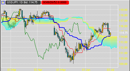 RES 2: Y115.40 линия Tenkan облака Ichimoku и 5-, 100-дневная движущие средние