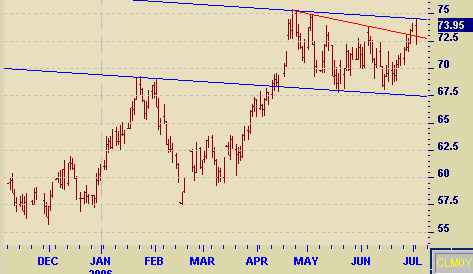 Если цены на нефть будут продолжать повышение, а, с технической точки зрения, об этом будет свидетельствовать преодоление уровня 75 долларов за баррель (light sweet), ФРС останется агрессивной в отношении инфляции. FOMC будет вынужден повысить ставки в августе, чтобы устранить потенциальный всплеск базовой инфляции. В то же время Банк Японии усилит свои опасения в отношении экономического роста и повременит с ужесточением политики кредитов. Безусловно, этот вариант позитивен для доллара и негативен для йены, но именно в краткосрочной перспективе (летний период). Однако если цены на нефть упадут ниже 70 доллар за баррель, ситуация может получить развитие абсолютно противоположное. "Хотите узнать, что будет с нефтью в конце июля и в августе - смотрите прогноз погоды", - говорит стратег одного из дружественных нам американских банков. Михаил Шульгин ProFinance.Ru - Forex News / Новости Форекс