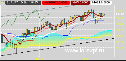 SUP 1: Y146.15/20 - 5- и 21-дневная скользящая средняя и линия Tenkan облака Ichimoku
