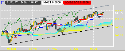 SUP 2: Y146.20 - 21-дневная скользящая средняя и линия Tenkan облака Ichimoku