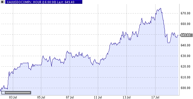 Цены на золото консолидируются во вторник в районе отметки $650.00 за унцию, а игроки продолжают следить за конфликтом на Ближнем Востоке и ждать выхода инфляционных данных. "Хотя золото, скорее всего, будет консолидироваться на уровне $650 после недавнего ралли до многонедельных пиков, взрывоопасная ситуация на Ближнем Востоке должна оказать поддержку ценам", - отмечают аналитики Standard Bank. Во вторник израильские самолеты нанесли очередной удар по Ливану, в результате чего погибли 23 человека. Аналитики, опрошенные агентством Reuters, говорят, что продажи понедельника, связанные с фиксацией прибыли, заставляют инвесторов нервничать, несмотря на военный конфликт и рост котировок нефти. Barclays Capital прогнозирует, что в третьем квартале котировки золота останутся волатильными, но в последние три месяца года прогнозируется возобновление движения вверх. "Неопределенность увеличивается, и, вероятно, мы увидим расширение конфликта на Ближнем Востоке прежде, чем произойдет некоторое ослабление напряженности", - говорит аналитик GFMS Ltd. в Лондоне Филип Ньюман. "Геополитическая напряженность сохранит высокую волатильность ны рынке золота, - считает вице-президент Kotak Commodity Securities Ltd. Айой Патак. - Любая эскалация конфликта на Ближнем Востоке приведет к росту цен".