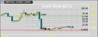 КОММЕНТАРИЙ: пока фунт/доллар остается выше отметки $1.8390 (уровень Фибоначчи 50.0 % движения $1.8598-$1.8179), риски состоят в восстановлении пары до 5-дневной скользящей средней, проходящей вблизи уровня $1.8480. Около этого уровня также находится уровень Фибоначчи 61.8 % движения $1.8388-$1.8535. Сохраняют актуальность сигналы "бычья дивергенция", сформированные осцилляторами часового и дневного графиков.
