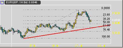 SUP 1: stg0.6837/40 - линия поддержки с 24 июля на часовом графике и 5-дневная скользящая средняя