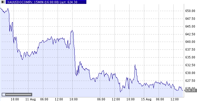 Цены на золото стали снижаться во вторник вслед за ценами на нефть, а участники рынка считают, что металл будет торговаться в узком диапазоне в ожидании данных об инфляции в США, которые могут повлиять на курс доллара. "На рынке присутствует тенденция к снижению для проверки уровня поддержки приблизительно в $620", - сказал Дэвид Холмс, менеджер по продаже металлов из Dresdner Kleinwort Investment Bank в интервью Reuters. "Мы считаем, что все значимые изменения на рынке будут происходить под влиянием внешних факторов, возможно, сильного доллара или ослабления цен на нефть", - добавляет он. Золото испытывает давление из-за цен на нефть, которые опустились ниже уровня $73 за баррель после наступившего перемирия между Израилем и ливанской группировкой "Хезболлах" и продолжения добычи нефти на самом крупном месторождении в Северной Америке, пишет агентство. "С вступившем в силу перемирия в Ливане можно ожидать, что высокая цена на золото, которая обычно бывает при военных конфликтах, станет падать, и не будет ничего удивительного, если в ближайшее время золото продолжит дешеветь", - сообщает в своем докладе Standard Bank.