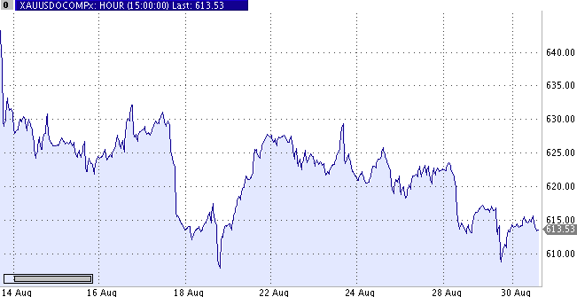 Цены на золото консолидируются в среду благодаря после распродажи и обновления пятинедельного минимума. Участники рынка ожидают, что цены на золото будут находиться под влиянием динамики доллара и нефти и дальнейшее снижение доллара благотворно отразится на "желтом металле". Выход протокола последнего заседания ФРС привел к росту золота на $3 на фоне падения доллара. Протоколы дали рынкам понять, что ФРС не будет спешить с дальнейшим повышением ставки рефинансирования. Аналитики ожидают распродажи доллара перед выходом данных о рынке труда США в пятницу. "Доллар еще снизился после выхода протоколов ФРС и золото тут же ответило на это. Но торги золотом, скорее всего, продолжатся в диапазоне", - сказал один дилер в интервью Reuters. Но некоторые аналитики не столь оптимистично смотрят на золото. После достижения 26-летнего максимума в мае - $730, золото упало до $543 в июне и с тех пор торгуется в широком диапазоне - $600-$650. Аналитик по драгоценным металлам из Daiichi Commodities Юкуджи Сонода считает, что цены на золото могут снизиться до $600 за унцию перед тем, как в сентябре не возобновится скупка со стороны ювелиров и промышленного сектора. Один из дилеров в Лондоне ожидает ликвидации позиций фондами. "Физический спрос не сможет поддержать цены на золото и можно ждать снижения стоимости до $550 в последнем квартале года и, возможно, еще ниже", - сказал дилер.