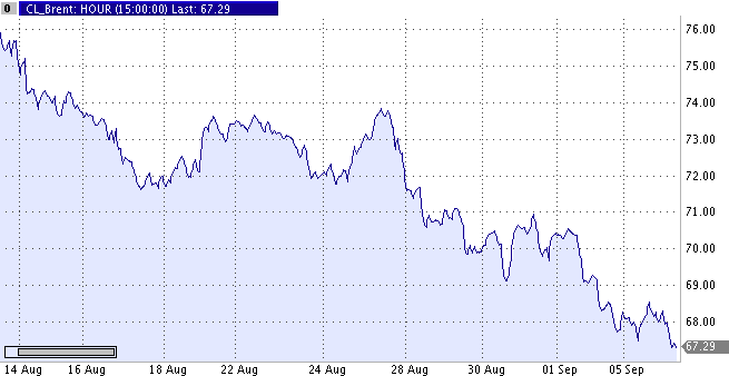 Цены на нефть продолжают безоткатное снижение, поскольку опасения срыва поставок начали ослабевать, так как автомобильный сезон в США закончился на этих выходных без каких-либо признаков срывов поставок, а переговоры вокруг ядерной программы между Западом и Ираном снизили опасения нарушения экспорта нефти из второго в ОПЕК по величине производителя нефти. "Никаких плохих новостей в настоящий момент нет", - говорит один из лондонских дилеров в интервью агентству Reuters. "Ситуация на рынке немного напоминает старые времена - лето прошло без какой-либо нехватки бензина, и зимние запасы печного топлива не вызывают никаких опасений. Даже ситуация вокруг Ирана выглядит сейчас удовлетворительно", - добавляет он. Россия и Китай во вторник продемонстрировали нежелание поддерживать какие-либо действия Совета Безопасности ООН по введению санкций в отношении Ирана. Обе страны обладают правом вето в Совете Безопасности и их позиция подчеркивает трудности, с которыми столкнулись США, призывающие к немедленному введению санкций против Ирана, проигнорировавшего требования ООН прекратить работы по обогащению урана к 31 августа. Рисковая премия в $10-15, заложенная в мировые цены на нефть в связи с ситуацией вокруг Ирана, постепенно сходит на нет по мере того, как все больше участников рынка начинают сомневаться в готовности США нанести удар по четвертому по величине нефтедобытчику мира, пишет Reuters. Тропический шторм Флоренс, возникший в Атлантическом океане может в пятницу перерасти в ураган, однако его маршрут не угрожает мексиканскому заливу, где находится нефтяное производство США, сообщил в среду Национальный центр по изучению ураганов.