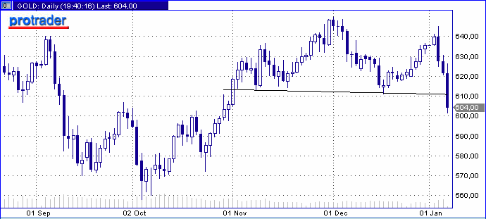 Как отмечает Джордж Джеро, старший вице-президент из RBC Capital Markets, "когда все негативные факторы накладываются друг на друга, фонды начинают продавать", что провоцирует сильные движения на рынке. Золото в пятницу достигло максимума в районе $626.20, после чего в связи релизом сильных данных по занятости в США, спровоцировавших рост доллара, упало до минимумов в области $601.60 и в настоящее время торгуется около $605.10 за тройскую унцию, при этом дополнительное давление на драгоценный металл вновь оказали цены на нефть, которые сегодня достигли отметки $54.90. Между тем, прорыв золота ниже $611 (линия шеи) позволяет говорить о формировании модели "голова и плечи" на дневном графике, которая указывает на возможность нисходящего движения к цели в районе $575. Тем не менее, сильная поддержка находится в области $605/600, и, пока драгоценный металл остается выше нее, у быков есть надежды на движение выше. ProFinance.Ru - Forex News / Новости Форекс