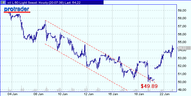 - IPE Brent Crude (март) - 53.94 при диапазоне котировок 53.43-54.60