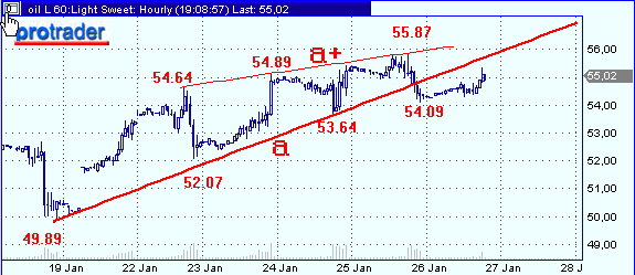 - Light, Sweet Crude Oil (март) - 55.10 при диапазоне котировок 54.20-55.33.