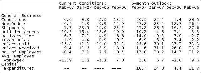 Индекс деловой активности ФРБ Филадельфии в феврале оказался ниже прогноза экономистов, опрошенных Reuters, в 5.0 пункта и составил 0.6 пункта, тогда как в январе значение индекса составляло 8.3 пункта. Индекс уплаченных цен вырос в феврале до 15.8 с 11.9 ранее, индекс новых заказов, между тем, упал до -0.5 с 1.3 в январе, а индекс занятости, также продемонстрировал снижение, в этом месяце достигнув -0.4 по сравнению с 7.9 в январе. Индекс отгрузок упал до 1.7 с 23.9, индекс запасов - до -1.9 с 0.4 месяцем ранее. Индекс шестимесячных перспектив, тем временем, составил 20.3 против 22.4 в январе. ProFinance.Ru - Forex News / Новости Форекс