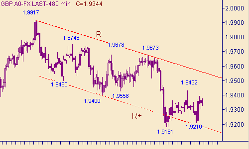 Для того, чтобы немного взбодриться попробуем следующий торговый план - в случае падения пары до 1.9290 открывать позицию на покупку с целью на 1.9390, стоп-лосс располагать на уровне 1.9269. Подобную позицию рассматривать только с коротким стоп-лоссом , так как даже в благоприятном для "быков" сценарии (коррекция от подъема фунта от вчерашнего минимума до сегодняшнего максимума), британская и американские валюты на графиках могут опустить курс до отметки 1.9200.