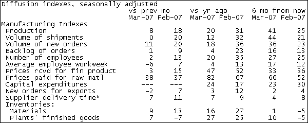 Индекс деловой активности ФРБ Канзаса в марте упал до 8 пунктов с 18 в феврале, при этом отрицательную динамику продемонстрировал индекс новых заказов, упавший до 11 с 20 пунктов, в то время как индекс уплаченных цен вырос до 38 с 37 пунктов месяцем ранее. Индекс занятости, между тем, упал с 13 пунктов в феврале до 2 пунктов в марте. ProFinance.Ru - Forex News / Новости Форекс