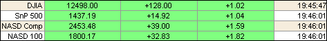 Американские фондовые индексы сегодня растут, при этом позитивная динамика на Wall Street была поддержана данными по рынку жилья, которые несколько ослабили беспокойство относительно проблем вторичного рынка ипотечного кредитования. Кроме того, благоприятный эффект оказало и снижение цен на нефть, что в первую очередь сказалось на бумагах компаний, ориентированных на потребителей, в частности акции Wal-Mart Stores Inc. прибавлили 1.73%. поднявшись до $48.22. Вместе с тем, ситуация на рынке "черного золота" способствовала снижению акций нефтяных компаний: бумаги Exxon Mobil Corp. упали на 0.46% до $75.81, а Royal Dutch Shell - на 0.57% до $66.46. В числе лидеров роста оказались акции технологичных компаний, в том числе eBay (+3.03% до $34.00), прогноз по продажам и прибылям которой в первом квартале был пересмотрен Bear Stearns в сторону повышения. Также наблюдался рост акции компании Google Inc. (+2.36% до $469.33), после того как было подписано соглашение с EchoStar Communications Corp. (+1.68% до $44.27) о совместном проекте в сфере телевизионной рекламы. Акции Boeing Co., между тем, поднялись на 0.95% до $89.67 в связи с сообщениями о новых проблемах у его европейского конкурента Airbus. ProFinance.Ru - Forex News / Новости Форекс