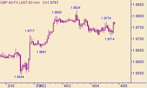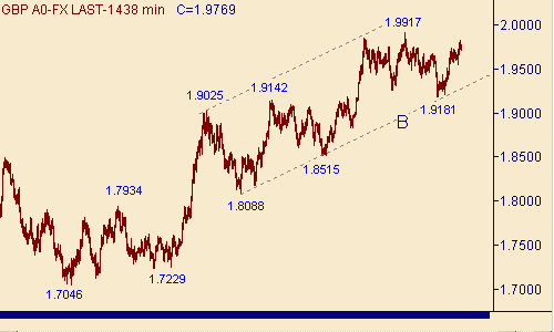 Сегодня фунт/доллар, завершая свое нисходящее движение с началом от 1.9824(03/04/07), смог опуститься ниже уровня 1.9117 только на 3п. (сегодняшний минимум равен 1.9714). Снижение пары 1.9824(03/04/07)-1.9414(04/04/07) можем считать коррекцией от её восходящего движения 1.9661(02/04/07)-1.9824(03/04/07). Далее возникает проблема с ответом на вопрос о перспективах дальнейшего изменения цены с понятными возможными вариантами ответов: продолжение коррекционной формации от up-движения фунта 1.9544(30/03/07)-1.9824(03/04/07); продолжение up-движения британской валюты 1.9544(30/03/07)-1.9824(03/04/07). Сейчас фунт/доллар предпринимает попытку сформировать продолжение up-движения, в случае неудачи у "быков" есть возможность перехода к модели коррекционной формации. Для "медведей" задачей номер один является убедительный прорыв курса ниже 1.9717, а более сильным техническим down-сигналом будет падение котировок ниже значения 1.9660, который укажет на окончание подъем фунта с началом от 1.9544(30/03/07) и на возможность завершения роста фунта с началом от 1.9181(05/03/07). На сегодня для восхода фунта перспективными целями рассматриваем следующие области: 1.9815/20, 1.9880/90, 1.9995/2.0005. Соответственно для захода - 1.9715/10, 1.9665/55, 1.9610/05, 1.9555/50.