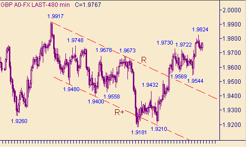 Конкретно сформулировать торговый план мы сейчас не можем. В режиме исследователя рынка проводим критический анализ графиков и ищем пути-дороги для постановки позиций. Как вариант, в случае приближения фунт/доллара к уровню 1.9820 ищем обоснований для открытия позиции на продажу с цель на уровне 1.9610 и промежуточными целями вблизи уровней 1.9720, 1.9670.