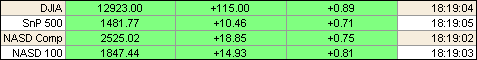 Акции на Wall Street растут, учитывая общий позитивный настрой на фондовых рынках Азии и Европы, а также сильные данные по доходам Google Inc. и Caterpillar Inc. В то время как чистая прибыль Caterpillar упала до $816 млн. или $1.23 на акцию с $840 млн. годом ранее, результаты все же оказались лучше прогнозов экономистов в $1.08 на акцию. Продажи, между тем, также оказались выше прогнозов в $8.910 млрд. и составили $10.02 млрд., и в результате бумаги компании выросли на NYSE на 5.55% до $72.43. Google, тем временем, порадовал экономистов ростом чистой прибыли на 69% до $1.0 млрд. или $3.18 на акцию по сравнению с $592 млн. годом ранее ($1.95 на акцию). Аналитики ожидали, что прибыль в расчете на акцию составит лишь $2.91, что спровоцировало рост интереса инвесторов к бумагам компании, которые на NASDAQ поднялись на 3.74% до $489.27. Хорошие результаты работы за первый квартал также оказали поддержку бумагам Schlumberger Ltd.(+3.24% до $76.73), Honeywell International Inc. (+2.98% до $50.52) и American Express Co. (+2.68% до $60.53).ProFinance.Ru - Forex News / Новости Форекс
