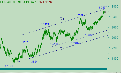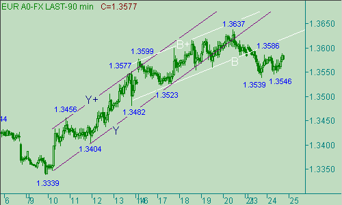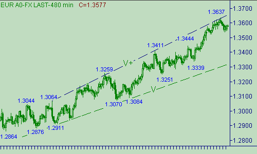 Первая часть (1.3637(20/04/07)-1.3539(23/04/07)) коррекции евро/доллара от восходящего движения, обозначенного на рис. 1 каналом B-B+, закончилась. Предполагаем, что пара находится в процессе формирования второй части этой коррекции. Целевые области для этой второй части коррекционной формации находятся около уровней 1.3590 и 1.3630. Но не забываем про то, что мы писали вчера, рассматривая возможность, в рамках формирования парой коррекционной формации, приближения евро к области около 1.3660. В общем, как всегда обо всем помним и ни про что не забываем. Сильным техническим сигналом, указывающим на продолжение восходящего движения европейской валюты, будем считать её прорыв выше 1.3670, например, закрытие свечи с периодом час выше этого уровня. А все, что происходит ниже этой отметки будем относить (пока относить) к понятию коррекции.