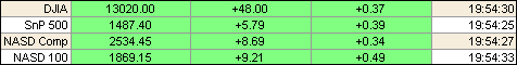 Акции на Wall Street сегодня растут благодаря сильным данным по заказам на товары длительного пользования и ряду финансовых отчетов американских компаний, превысивших прогнозы экономистов, что нивелировало неблагоприятный эффект от данных по рынку жилья, при этом DJIA удалось преодолеть отметку 13000. Руководство PepsiCo Inc. объявило о росте прибыли в первом квартале на 16% до $1.10 млрд. или 65 центов на акцию с $947 млн. или 56 центов на акцию годом ранее. Аналитики, между тем, ожидали роста лишь до 61 цента на акцию, в результате чего бумаги компании поднялись сегодня на 0.75% $66.91. Вместе с тем, быков также порадовали и результаты деятельности технологичной компании Corning Inc. (+4.64% до $24.83), принимая во внимание, что прибыль за квартал выросла на 27% до $327 млн. или 20 центов на акцию с $257 млн. или 16 центов годом ранее. Крупнейший в мире производитель алюминия Alcoa Inc., между тем, заявил о возможности продажи упаковочной компании, что спровоцировало рост акций на 6.48% до $36.15, тогда как бумаги Amazon.com Inc. поднялись на 23.28% до $55.17, учитывая, что прибыль компании за первый квартал увеличилась более чем в двое. ProFinance.Ru - Forex News / Новости Форекс