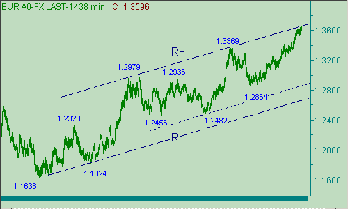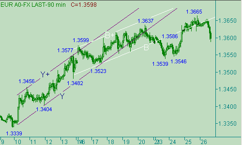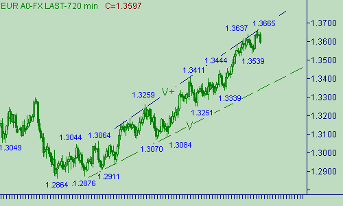 Вчера евро/доллар приблизился к своему 11-летнему максимуму, равному 1.3666, и установил дневной максимум на отметке 1.3665. К up-настроениям пары мы относимся спокойно, так как она не прорвалась выше 1.3670, и можем далее рассматривать перспективы коррекционной формации, например от роста евро в канале B-B+ на рис. 1. В остальном, ситуация на графиках не изменилась. Все так же, как и вчера, прорыв курса выше 1.3670 будет будоражить в нас интерес к ценовым областям 1.3720/35,1.3830/40, которые можно и нужно рассматривать в качестве промежуточных целей восходящего движения европейской валюты, а стало быть возможно их рассмотрение для постановки позиции в расчете на down-отскок цены от этих областей или на её прорыв выше этих отметин на графиках евро/доллара. А вот количество потенциальных целевых уровней для down-коррекции нас совсем не радует из-за их кучности: 1.3595, 1.3570, 1.3550, 1.3525, 1.3505, 1.3485, 1.3465, 1.3445 и т.д. с периодом в 20-25п.