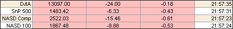 Акции на Wall Street сегодня снижаются, и, по мнению аналитиков, негативный настрой связан с более слабыми, нежели ожидалось данными по рынку жилья, которые сегодня были представлены отчетом по продажам недостроенных домов, тогда как еще одним негативным фактором стала публикация индекса ISM, который усилил беспокойство инвесторов относительно инфляции. Кроме того, участники рынка, теперь демонстрируют большую осторожность, опасаясь того, что ожидания позитивных данных по доходам корпораций могут быть излишне оптимистичными и не оправдают надежд. Вместе с тем, в то время как некоторые компании демонстрируют хорошие финансовые результаты, инвесторы предпочитают продавать их акции, принимая во внимание не слишком позитивные перспективы. Так, например, сегодня отрицательную динамику демонстрировали бумаги Procter & Gamble Co., которые упали на 2.50% и достигли $62.79. Между тем, позитивными стали новости о намерении Microsoft Corp. (+0.80% до $30.18) приобрести 24/7 Real Media Inc. (+20.10% до $11.95) за $1 мрлд., а также сообщения о том, что Dow Jones & Co. Inc. (+53.29% до $55.69) может быть куплена News Corp. (-3.75% до $21.55) по цене $60 за акцию. ProFinance.Ru - Forex News / Новости Форекс