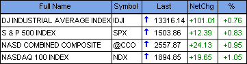 Несмотря на слабый отчет по розничным продажам, на Wall Street вернулся позитивный настрой, причиной чему послужило снижение инфляции цен производителей в апреле. В результате выросли акции финансовых компаний, чувствительных к изменению процентных ставок, в частности Goldman Sachs Group Inc. (+1.39% до $226.20) и Merrill Lynch & Co Inc. (+1.94 до $92.79). В числе бумаг, демонстрирующих восходящее движение, сегодня также оказались акции Chicago Mercantile Exchange Holdings, которые поднялись на 6.92% до $532.42 после того как компания повысила цену предложения о покупке CBOT Holdings Inc. (+3.05% до $199.92) на 16%. Между тем, общий позитивный настрой на рынке вместе с некоторым ростом цен на нефть позитивно отразился на бумагах Exxon Mobil Corp. и ConocoPhillips, которые выросли на 1.90% до $80.90 и на 1.94% до $70.42. ProFinance.Ru - Forex News / Новости Форекс