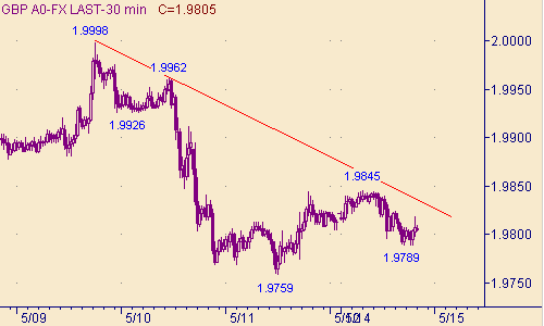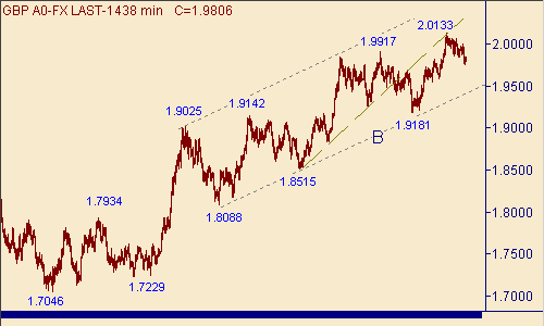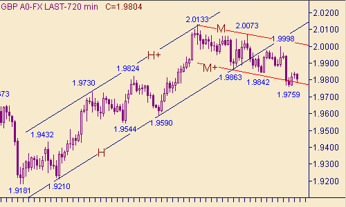 Фунт/доллар продолжает снижение в нисходящем канале M-M+ на рис. 2, который мы рассматриваем как часть коррекции от его роста 1.9181(05/03/07)-2.0133(18/04/07). Сейчас борьба ведется за окончание последнего нисходящего движения британской валюты 1.9998(09/05/07)-1.9759(11/05/07) в рамках down-канала M-M+ на рис. 2. Сегодня "медведи" дружно отбили наступление "быков" около уровня 1.9845. Текущую ситуацию определяем как нейтральную. "Быкам" необходимо обозначить свои серьезные намерения прорывом выше 1.9845, но следующие приметные области сопротивления находятся совсем близко от этого уровня: 1.9875/85, 1.9000/10. Down-отскок от этих областей может спровоцировать продолжение снижения котировок в канале M-M+ на рис. 2. А вот для того, чтобы мы поверили в формирование коррекции фунта от его падения в этом канале ему необходимо подняться выше 2.0000. Рабочая модель остается прежняя - формирование фунт/долларом коррекционной формации от его роста 1.9181(05/03/07)-2.0133(18/04/07).