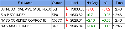 Не все бумаги, вместе с тем, демонстрируют отрицательную динамику. Так акции Alcoa Inc. сегодня прибавили 2.55% до $42.66 после того как появились сообщения о том, что BHP Billiton Ltd (+1.54% до $58.76) возобновил планы по покупке компании за $40 млрд. Растут сегодня бумаги Apple Inc., которые прибавили в цене 2.8% до $123.97 благодаря сообщениям о том, что батарея iPhone будет иметь значительно более продолжительный срок службы. Также выше поднялись бумаги Symantec Corp. (+2.69% до $20.23), причиной чему послужил пересмотр рейтинга акций компании с "нейтральный" до "покупать". Между тем, акции Finish Line Inc. упали на 5.62% до $11.92 в связи с объявлением намерения компании приобрести розничного продавца обуви Genesco Inc. (+8.25% до $53.69) за $1.5 млрд. или $54.50 за акцию. General Electric Co. (-0.18% до $38.05), по появившимся сообщениям в СМИ, кажется, нашла себе партнера в лице Pearson Plc для приобретения компании Dow Jones & Co. Inc. (-0.36% до $58.80), интерес к покупке которой за $5 млрд. уже проявила News Corp.