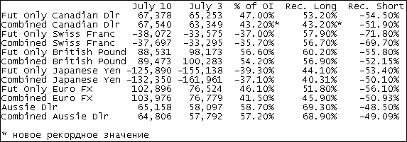 Данные CFTC по спекулятивным позициям на IMM на 10 июля