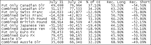 Данные CFTC по спекулятивным позициям на IMM на 31 июля