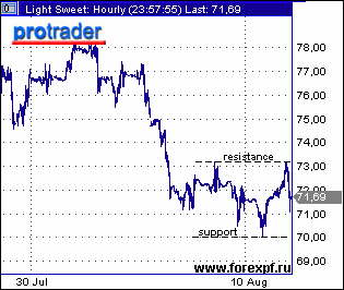 Нефть, как и другие активы, испытала на себе последствия вмешательства центральных банков, постаравшихся увеличить ликвидность для того, чтобы привести в чувство инвесторов. Стабилизация выше поддержки в районе $70 за баррель позволила участникам рынка уделить больше внимания позитивным фундаментальным факторам и вспомнить об отчете International Energy Agency, в котором были обозначены весьма благоприятные перспективы спроса на "черное золото". IEA по-прежнему ожидает, что в 2007 году рост спроса в годовом исчислении составит 1.8% или 86 млн. баррелей в день, в то время в 2008 году он вырастет на 2.5% до 88.2 млн. баррелей в день. Быки воспользовались некоторым улучшением обстановки и протестировали сопротивление в районе $72.90/73.20, в результате чего сентябрьский фьючерс на нефть марки light sweet на Nymex достиг отметки $73.19. Поддержку нефти сегодня оказали и сообщения о потенциальной опасности нефтедобыче в Мексиканском заливе со стороны ураганов. В настоящее время, однако, сентябрьский контракт держится около $71.62, учитывая неспособность продолжить движение в условиях сохраняющихся опасений относительно рынка субстандартных ипотечных кредитов, а также заявления метеорологов о том, что одна из штормовых систем, представляющих потенциальную опасность, находится еще слишком далеко и, скорее, будет двигаться по направлению к северо-восточному побережью США, чем в сторону залива. Тем временем, грозовая активность, наблюдаемая в западной части Карибского бассейна, на данный момент еще слишком слабо развита, чтобы можно было говорить о шторме. Нефть остается выше линии аптренда с минимумов января этого года, что является позитивным знаком, однако неудачные попытки пробиться выше и тот, факт, что проблемы, ставшие причиной беспокойства относительно перспектив роста экономики и спроса на нефть, остаются актуальными, указывает на риски снижения. ProFinance.Ru - Forex News / Новости Форекс