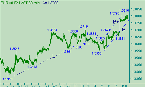 В настоящее время евро/доллар, после теста области, расположенной около 1.3820, пытается обозначить коррекцию от восходящего движения с началом от 1.3661(07/09/07), которое является второй Up-веткой в канале B-B+, когда первая ветка - 1.36550(04/09/07)-1.3709(06/09/07). В случае дальнейшего развития указонной коррекции можем ожидать в рамках неё теста евро уровня 1.3680. Другие уровни, вблизи которых эта коррекция может закончить свой жизненный путь, находятся вблизи отметок 1.3750, 1.3720.