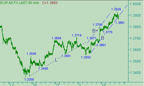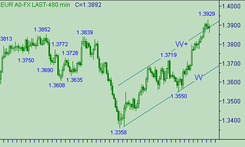 От уровня 1.3900 была открыта позиция на продажу, которая закрылась по стоп-лоссу, находящемуся на этом же уровне (п. 2 "Напоминания", при падении котировок до 1.3870 стоп-лосс был перенесен). Повторные продажу открывать не будем. Те же, кто считает, что "нет открытых позиций - нет работы" могут попробовать повторно открывать продажи при тесте ценой 1.3920 с коротким стоп-лоссом (например, на уровне 1.3933). Цель для продаж - 1.3780. Структура восходящего движения за последние три дня (локальные донышки в down-откатах находятся ниже предыдущих локальных вершинок) не буддирует в нас желания открывать позиции на покупку.