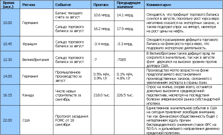 | 09.10.07 05:59 | Валютный рынок в Азии. Ход торгов | 09.10.07 10:18 | Курс евро снижается, так как финминистры Европы обеспокоены быстрым ростом валюты |