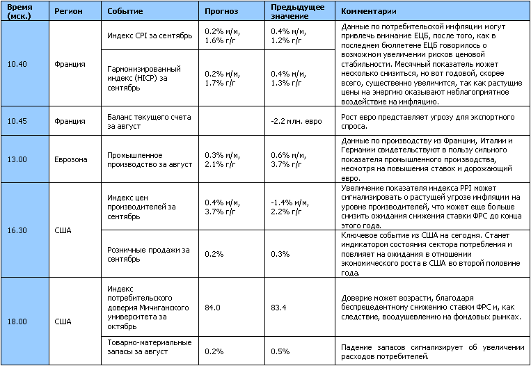 Фундаментальные события предстоящего дня