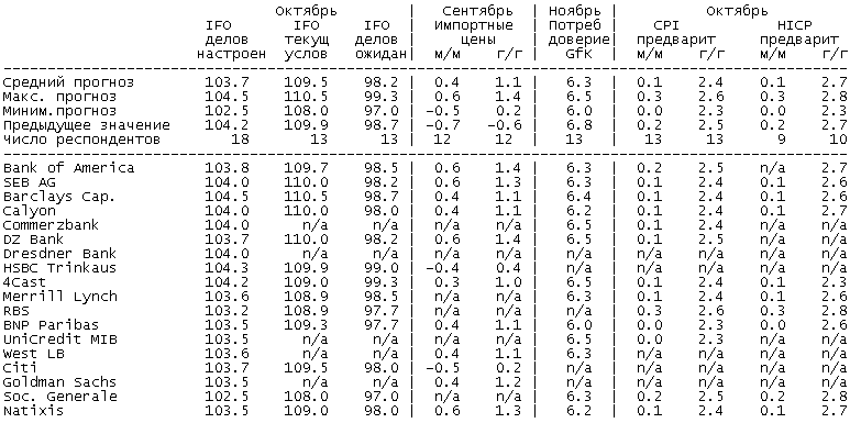 | 22.10.07 10:58 | Прогнозы экономистов по статистике в Еврозоне | 22.10.07 11:32 | Прогнозы экономистов по статистике в CША |