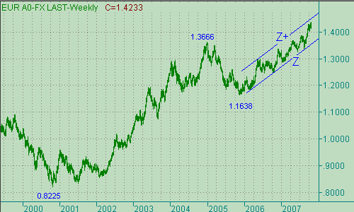 Аналогичная аномалия наблюдается и в деловом секторе, где финансовые директора волнуются по поводу экономики в целом, но не сомневаются в том, что их компании продолжат показывать хорошие результаты и реализовывать программы капитальных инвестиций. Но… какая же статья по экономике обходится без фразы "но, с другой стороны"! Итак, но, с другой стороны, цены на нефть взлетели до 90 долларов за баррель, а кредитные рынки по-прежнему пребывают в крайне неустойчивом положении. Безработица, вероятно, продолжит расти. Ведущие мировые финансовые институты рискуют оказаться на грани банкротства. Инвесторы избавляются от американских ценных бумаг. Вот почему глава ФРС Бен Бернанке говорит о том, что "общие экономические перспективы остаются неясными". Я пока "полет нормальный", сказал человек, спрыгнувший с крыши 102-этажного небоскреба, долетев до 50 этажа. 19:24 Blade$: Вечерний всем, друзья! А.Васильев - голова. У меня намечен уровень 1.4315, но, видимо, стоит его пересмотреть..