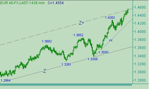 Особенного выбора у нас нет и придется рассматривать возможность постановки покупок, предполагая продолжения движения евро/доллара в рабочей модели, или продаж евро, надеясь на начало down-коррекции. Пробуем ту же тактику, что применяли последний раз. В случае теста парой уровень 1.4580 будем открывать позиции на продажу со стоп-лоссом на 1.4608, цель - 1.4400. Если после открытия позиции курс коснется 1.4550 закроем половину позиции, а стоп-лосс перенесем на 1.4641.
