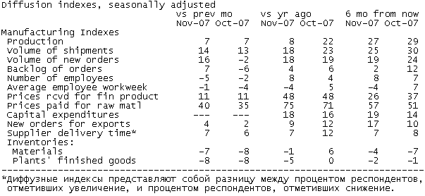 Индекс производственной активности ФРБ Канзаса в ноябре остался на прежнем уровне в 7 пунктов, при этом индекс занятости продолжил снижение и составил -5 пунктов по сравнению с -2 в октябре. Индекс новых заказов, тем временем, вырос с -2 до 16 пунктов, а индекс уплаченных цен достиг 40 пунктов после 35 месяцем ранее. ProFinance.Ru - Forex News / Новости Форекс