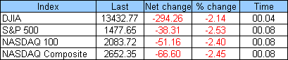 Решение FOMC снизить ставку по федеральным фондам на 0.25% до 4.25% соответствовало ожиданиям участников рынка, оно разочаровало тех игроков, кто рассчитывал на более агрессивное ослабление денежно-кредитной политики, при этом последние не нашли утешения и в решении комитета относительно дисконтной ставки, которая была снижена лишь на 0.25%. Решение FOMC не оправдало надежд быков на Wall Street, которые после его публикации поспешно перешли в отступления, в результате чего основные американские фондовые индексы вместо умеренного роста, наблюдавшегося до решения по ставкам, теперь демонстрируют падение более чем на 2%. В большей степени пострадавшими оказались бумаги компаний, чья деятельность сильно зависит от процентных ставок - компании финансового сектора и крупные промышленные предприятия. Так ниже упали акции Boeing Co (-4.22% до $88.73), Caterpillar Inc. (-3.32% до $74.04), American Express Со (-5.21% до $54.58), Citigroup Inc.(-3.91% до $33.41) и Bank of America Corp. (-3.90% до $44.82). Между тем, бумаги Apple Inc. (-2.19% до $189.95), ранее демонстрировавшие уверенный рост, после решения FOMC оказались под давлением, в то время как акции Texas Instruments Inc (+1.44% до $33.14) и AT&T Inc (+5.51% до $39.99), также не были обойдены вниманием медведей и несколько сдали позиции. ProFinance.Ru - Forex News / Новости Форекс