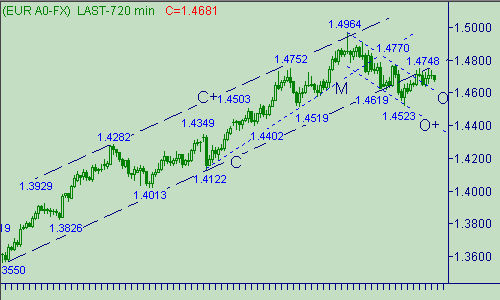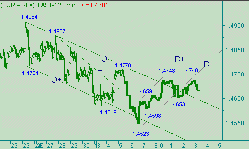 Вчерашний up-порыв снес наш положительный стоп-лосс (перенос стоп-лосс на 1.4725) от продаж от 1.4730 и поэтому мы находимся вне рынка. Теперь мы можем сесть на берег, закинуть удочку и ждать новых поклевок. В случае снижения цены до 1.4535/30 будем рассматривать возможности для открытия покупок (стопа-лосс - ниже 1.4500, цель - 1.4740). Постановку этой позиции отменяет прорыв курса выше 1.4750. При приближении евро/доллара к 1.4860 будем искать стимулы для открытия продаж. Постановку этой позиции отменяет падение евро ниже 1.4640.