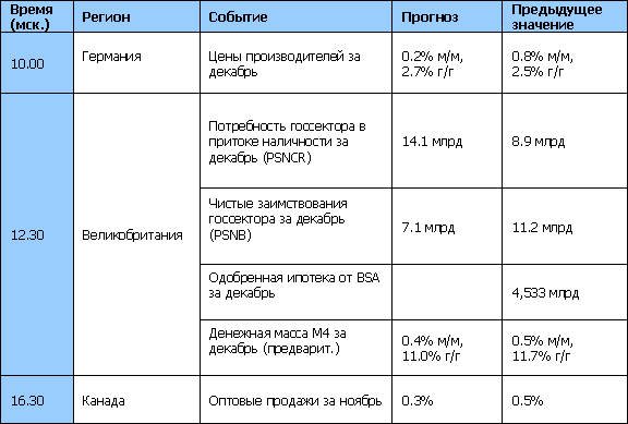 В Великобритании сегодня публикуются данные по государственным финансам за декабрь, а также по ипотечному кредитованию. Согласно прогнозам, казначейство может не выполнить свои финансовые цели, несмотря на довольно высокую потребность госсектора в притоке наличности. Что касается сектора ипотеки, то ожидается, что спрос на новые дома в Великобритании в ноябре продолжил падать на фоне опасений экономической рецессии. В издании Financial Times сообщается, что ипотечные кредиторы Великобритании усиливают давление на Банк Англии и Министерство финансов принять меры по увеличению средств для предоставления займов потенциальным покупателям жилья. Группы, включая Совет ипотечных кредиторов, Европейский форум секьюритизации и частные банки хотят, чтобы правительство поддержало секьюритизацию ипотек.