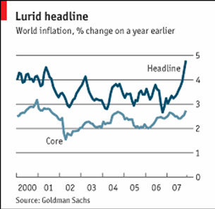 Немножко инфляции быть не может, как нельзя быть немножко беременной. Следует ли иметь в виду эту старую народную мудрость, глядя на рост потребительских цен во всем мире? Америка на грани рецессии, а данные по инфляции, опубликованные 16 января, свидетельствуют о том, что потребительские цены в декабре выросли на 4,1% выше в годовом исчислении, по сравнению с 2,5% в 2006г. В Еврозоне инфляция составляет 3,1%, что является самым высоким уровнем с момента выпуска в обращение евро. Уровень инфляции в Китае, 6,9%, - рекордный за 11 лет. Согласно индексу, рассчитанному Goldman Sachs, за период с начала 2007 года и по ноябрь мировая инфляция составила 4,8%, что на два процента выше показателя за предыдущий год (смотрите график). Цены выросли в 80% изученных стран. По историческим меркам это пустяк. 5% уровень инфляции вряд ли свидетельствует о возврате к двузначному росту цен, который терзал богатые страны в 1970х и развивающиеся - в течение гораздо большего времени. (большую половину 1990х средний уровень инфляции в бедных странах равнялся 50%). Тем не менее, достаточно широкое распространение данной тенденции ставит перед нами щекотливые вопросы. Не свидетельствует ли несметное количество сигналов, начиная с розничных продаж и заканчивая растущей безработицей, указывающих на американскую рецессию, о том, что мир стоит на краю стагфляционной пропасти? И не ограничит ли устойчивое ценовое давление потенциал Центробанка в плане ослабления монетарной политики, которая уже была обещана финансовой общественности с целью разрешения кризисной ситуации?