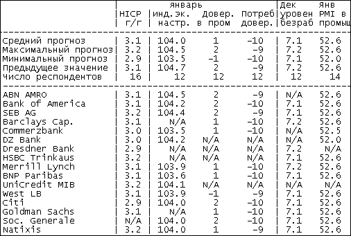 Прогнозы экономистов по статистике в Еврозоне