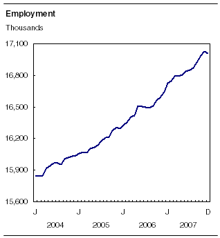Средний прогноз экономистов предполагает, что канадская экономика в январе 2008 года создаст порядка 9000 новых рабочих мест. Уровень безработицы составит 6%. Напомним, что отчет за декабрь показал сокращение занятости на 19000 рабочих мест. Столь негативный результат последовал вслед за семью месяцами подряд непрерывного роста занятости. За весь 2007 год занятость выросла на 2.2%, что соответствует увеличению на 370000 новых рабочих мест в абсолютном значении. Подобные темпы роста наблюдались и в 2006 году, когда за год занятость увеличилась на 2.1%. Уровень занятости в декабре составлял 5.9%.