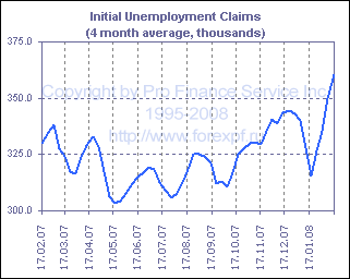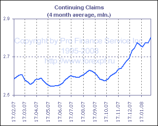 Число новых заявок на получение пособий по безработице в неделю до 16 февраля сократилось на 9 000 до 349 000, что оказалось несколько выше среднего прогноза аналитиков . Между тем, данные за предыдущую неделю были пересмотрены с 348 000 до 358 000, в результате чего среднее за четыре недели число заявок достигло 360 500 (максимум с 2005 года) по сравнению с 335 250 в январе, 343 250 в декабре и 340 500 в ноябре, что является негативным сигналом, предполагающим ослабление рынка труда. Тем временем, общее число лиц получающих безработицу в неделю до 9 февраля возросло на 48 000 до 2.784 млн. ProFinance.Ru - Forex News / Новости Форекс
