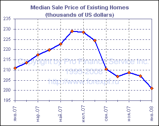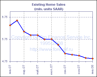 Согласно отчету, опубликованному Национальной Ассоциацией Риэлтеров, продажи существующих домов вновь снизились в январе, хотя это снижение и оказалось менее сильным, нежели ожидалось участниками рынка. Падение показателя в январе составило 0.4% м/м или 23.4% г/г, в результате чего число проданных объектов в годовом исчислении с учетом сезонных колебаний составило 4.89 млн., что превзошло средний прогноз в 4.80 млн. Данные за декабрь, тем временем были пересмотрены с 4.89 млн. до 4.91 млн. Рост продаж был зафиксирован лишь на среднем западе (+3.2%), в то время как на юге (-0.5%), северо-востоке (-3.6%) и западе (-2.1%) США наблюдалось снижение. В январе продажи односемейных домов выросли на 0.5% до 4.34 млн., в то время как падение продаж многосемейных домов составило 6.5% до 550 000. Общий объем предложения на рынке в январе вырос на 5.5% до 4.19 млн., и при нынешнем уровне продаж эти запасы будут реализованы за 10.3 месяца по сравнению с 9.7 месяцами в декабре. Средняя цена дома в январе снизилась с $207 000 до $201 100. Ян Шэффердсон, главный экономист HFE, комментируя отчет, отметил, что продажи уже пятый месяц остаются ниже значения, которое предполагают данные по заключенным, но неоплаченным контрактам по продаже существующих домов. Это, по его словам, может означать, что люди отказываются от заключенных договоров, несмотря на то, что уже заплатили гарантийный депозит, а это является негативным сигналом. Шэффердсон также обратил внимание на рост запасов и отметил, что ожидает продолжения падения продаж и цен на жилья, добавляя, что не видит признаков окончания коррекции на рынке. ProFinance.Ru - Forex News / Новости Форекс
