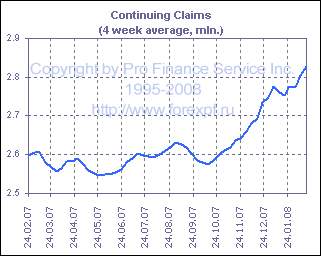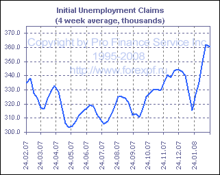 Согласно опубликованному сегодня департаментом труда США отчету, число новых заявок на получение пособий по безработице в неделю до 22 января выросло на 19 000 до 373 000, что оказалось заметно больше, чем в среднем ожидали экономисты. Между тем, данные за предыдущую неделю были пересмотрены с 349 000 до 354 000, в результате чего среднее число заявок за последние четыре недели составило 360 500 по сравнению с 361 750 заявками неделей ранее (прим.ProFinance.ru: показатель был пересмотрен с 360 500). Общее число лиц, получающих пособие по безработице, тем временем, вновь выросло и в неделю до 16 февраля составило 2.807 млн., что на 21 000 больше, чем было неделей ранее. ProFinance.Ru - Forex News / Новости Форекс