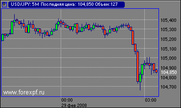 | 29.02.08 03:20 | Доллар/иена. Потеря уровня 105 сулит иене существенный рост | 29.02.08 09:26 | Forex в Азии: доллар упал к трехлетнему минимуму против иены |